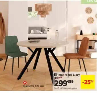 Actuellement en offre chez Conforama : Table ronde Glory ✅ Valable du 23-12 au 26-01.