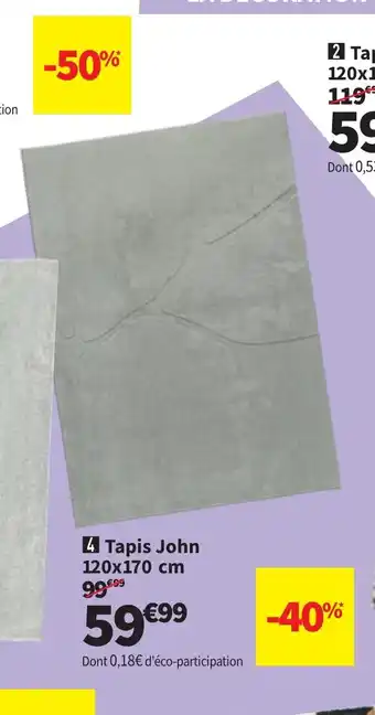 Actuellement en offre chez Conforama : Tapis John ✅ Valable du 24-02 au 30-03.
