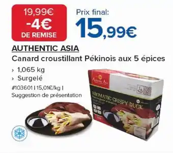 Actuellement en offre chez Costco : AUTHENTIC ASIA Canard croustillant Pékinois aux 5 épices ✅ Valable du 19-01 au 15-02.