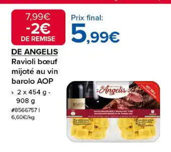 Offre DE ANGELIS Ravioli boeuf mijoté au vin barolo AOP chez Costco