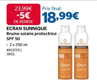 Offre ECRAN SUNNIQUE Brume solaire protectrice SPF 50 chez Costco