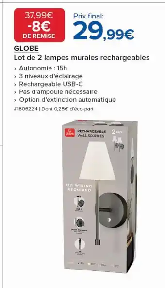 GLOBE Lot de 2 lampes murales rechargeables : offres et promos Costco à découvrir