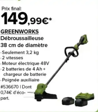 Greenworks débroussailleuse 38 cm de diamètre offres et promotions en ligne chez Costco