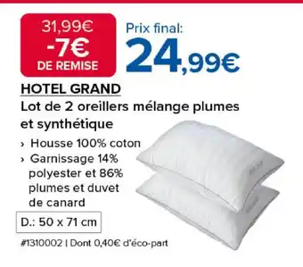Offre HOTEL GRAND Lot de 2 oreillers mélange plumes et synthétique chez Costco