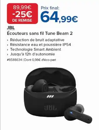 JBL Écouteurs sans fil Tune Beam 2 : offres et promos Costco à découvrir