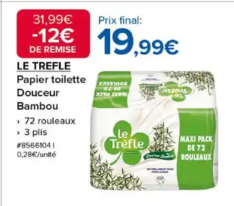 Actuellement en offre chez Costco : LE TREFLE Papier toilette Douceur Bambou ✅ Valable du 16-02 au 15-03.