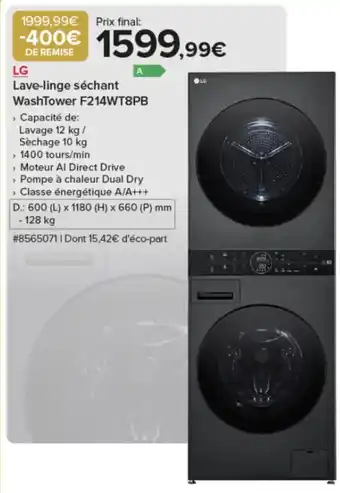 LG Lave-linge séchant WashTower F214WT8PB : offres et promos Costco à découvrir