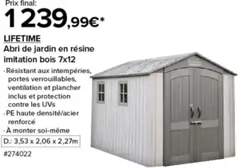 Actuellement en offre chez Costco : Lifetime Abri de jardin en résine imitation bois 7x12 ✅ Valable du 20-02 au 1-03.