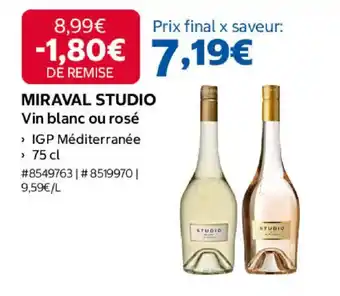 En plus de l'offre Miraval studio vin blanc ou rosé, Costco propose une large gamme de produits. Consultez le Catalogue Costco hebdomadaire pour découvrir les meilleures offres et promotions. En plus de Miraval studio vin blanc ou rosé, il y a aussi : IGP MEDITERRANEE studio by miraval, IGP MEDITERRANEE studio by miraval & Cuisse de bergère vin de france rosé.