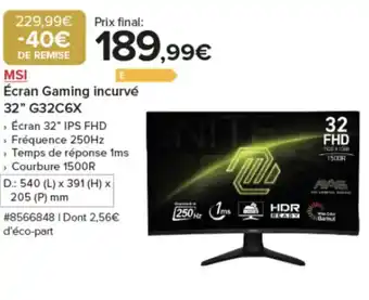 Actuellement en offre chez Costco : MSI Écran Gaming incurvé 32" G32C6X ✅ Valable du 16-03 au 29-03.