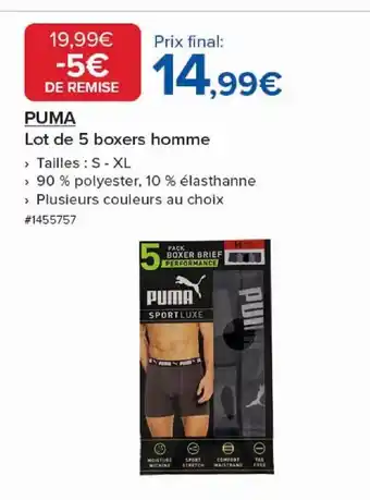 PUMA Lot de 5 boxers homme offres et promotions en ligne chez Costco