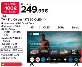 Offre Tcl - tv 43 43t69c qled 4k chez Costco