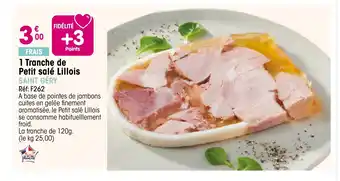 Le prix de l'offre 1 Tranche de Petit salé Lillois se trouve également en haut de la page, ainsi que la date à laquelle l'offre est disponible. Vous pouvez également vérifier les prix dans le Catalogue Croque Gel actuel ou sur le site Internet de Croque Gel. Les offres vous permettent d'acheter les produits Croque Gel au prix le plus bas.
