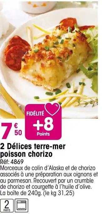 2 délices terre-mer poisson chorizo 240 g