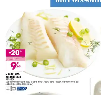 L'offre est disponible dans plusieurs magasins, vérifiez tous les produits pour obtenir le 2 Maxi dos de cabillaud le moins cher. Si vous souhaitez savoir si l'article est en vente avec une plus grosse remise dans un autre magasin, consultez la catégorie 'Supermarché'. Ces offres pourraient aussi vous intéresser : Dos de cabillaud, Dos de cabillaud & DOS DE CABILLAUD.