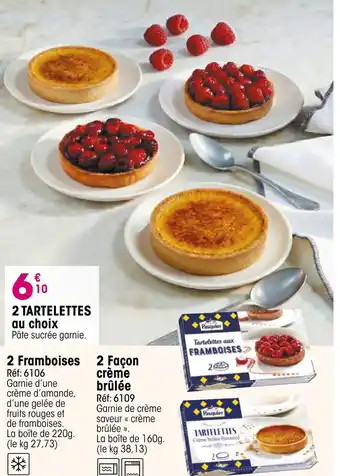 En plus de l'offre 2 tartelettes, Croque Gel propose une large gamme de produits. Consultez le Catalogue Croque Gel hebdomadaire pour découvrir les meilleures offres et promotions. En plus de 2 tartelettes, il y a aussi : 2 tartelettes Tatin pommes caramélisées, 8 Tartelettes Cœur & 8 Tartelettes aux poireaux.