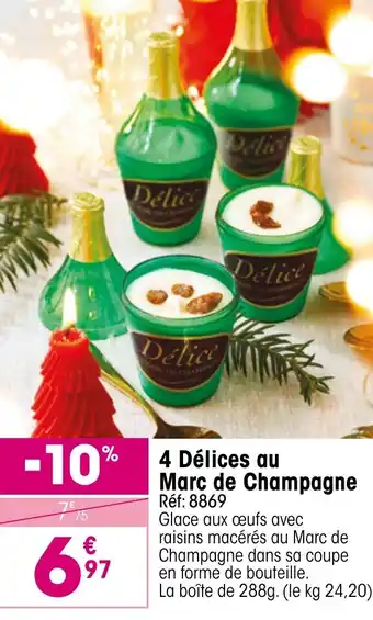 L'offre est disponible dans plusieurs magasins, vérifiez tous les produits pour obtenir le 4 délices au marc de champagne le moins cher. Si vous souhaitez savoir si l'article est en vente avec une plus grosse remise dans un autre magasin, consultez la catégorie 'Supermarché'. Ces offres pourraient aussi vous intéresser : St marc - lingettes nettoyantes, St marc lingettes nettoyantes & St marc - lingettes nettoyantes.