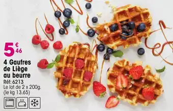 En plus de l'offre 4 gaufres de liège au beurre, Croque Gel propose une large gamme de produits. Consultez le Catalogue Croque Gel hebdomadaire pour découvrir les meilleures offres et promotions. En plus de 4 gaufres de liège au beurre, il y a aussi : CARREFOUR ORIGINAL Gaufres de Liège, Gaufres artisanales pur beurre & Gaufres.