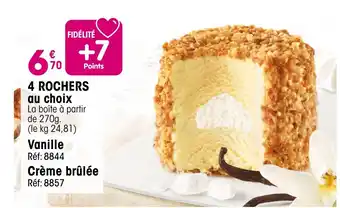 En plus de l'offre 4 rochers, Croque Gel propose une large gamme de produits. Consultez le Catalogue Croque Gel hebdomadaire pour découvrir les meilleures offres et promotions. En plus de 4 rochers, il y a aussi : 4 rochers creme brulee, SUCHARD Rochers & ROCHERS 'SUCHARD'.