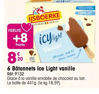 L'offre est disponible dans plusieurs magasins, vérifiez tous les produits pour obtenir le 6 Bâtonnets Ice Light vanille le moins cher. Si vous souhaitez savoir si l'article est en vente avec une plus grosse remise dans un autre magasin, consultez la catégorie 'Supermarché'. Ces offres pourraient aussi vous intéresser : 4 bâtonnets vanille cookie, 12 Bâtonnets vanille/fraise & 16 Bâtonnets saveur vanille.