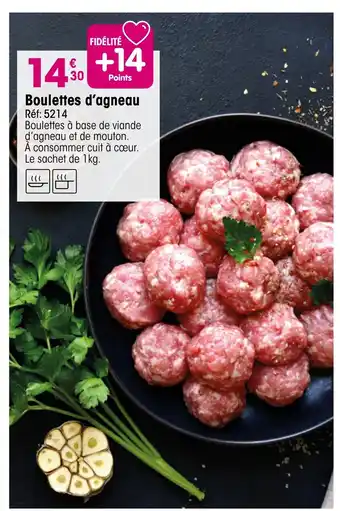 En plus de l'offre Boulettes d'agneau, Croque Gel propose une large gamme de produits. Consultez le Catalogue Croque Gel hebdomadaire pour découvrir les meilleures offres et promotions. En plus de Boulettes d'agneau, il y a aussi : Gigot d'agneau, Sauté d'agneau & Navarin d'agneau.