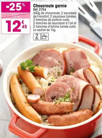 L'offre est disponible dans plusieurs magasins, vérifiez tous les produits pour obtenir le Choucroute garnie le moins cher. Si vous souhaitez savoir si l'article est en vente avec une plus grosse remise dans un autre magasin, consultez la catégorie 'Supermarché'. Ces offres pourraient aussi vous intéresser : Choucroute garnie, CHOUCROUTE GARNIE & Choucroute garnie.
