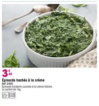 Le prix de l'offre Épinards hachés à la crème se trouve également en haut de la page, ainsi que la date à laquelle l'offre est disponible. Vous pouvez également vérifier les prix dans le Catalogue Croque Gel actuel ou sur le site Internet de Croque Gel. Les offres vous permettent d'acheter les produits Croque Gel au prix le plus bas.