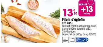 En plus de l'offre Filets d'églefin, Croque Gel propose une large gamme de produits. Consultez le Catalogue Croque Gel hebdomadaire pour découvrir les meilleures offres et promotions. En plus de Filets d'églefin, il y a aussi : Filets d'églefin coupés en portions, 4 coeurs de filets d'églefin & Filet d'églefin.