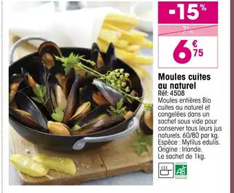 L'offre est disponible dans plusieurs magasins, vérifiez tous les produits pour obtenir le Moules cuites au naturel le moins cher. Si vous souhaitez savoir si l'article est en vente avec une plus grosse remise dans un autre magasin, consultez la catégorie 'Supermarché'. Ces offres pourraient aussi vous intéresser : Moules décoquillées cuites, Moules du pacifique décoquillées cuites & AUCHAN Moules décoquillées cuites surgelées.