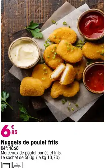 L'offre est disponible dans plusieurs magasins, vérifiez tous les produits pour obtenir le Nuggets de poulet frits le moins cher. Si vous souhaitez savoir si l'article est en vente avec une plus grosse remise dans un autre magasin, consultez la catégorie 'Supermarché'. Ces offres pourraient aussi vous intéresser : Nuggets de poulet, Nuggets de poulet & Nuggets de poulet avec sauces.