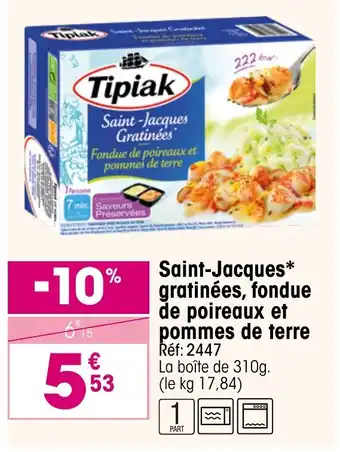 Offre Saint-jacque* gratinées, fondue de poireaux et pommes de terre chez Croque Gel