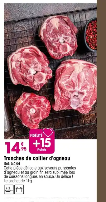 En plus de l'offre Tranches de collier d'agneau, Croque Gel propose une large gamme de produits. Consultez le Catalogue Croque Gel hebdomadaire pour découvrir les meilleures offres et promotions. En plus de Tranches de collier d'agneau, il y a aussi : Tranches de gigot d'agneau, Gigot d'agneau & Sauté d'agneau.