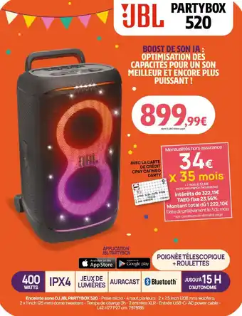 Enceinte sono dj jbl partybox 520 : offres et promos Darty à découvrir