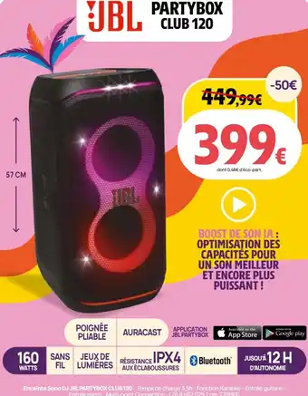 Le prix de l'offre Enceinte sono dj jbl partybox club 120 se trouve également en haut de la page, ainsi que la date à laquelle l'offre est disponible. Vous pouvez également vérifier les prix dans le Catalogue Darty actuel ou sur le site Internet de Darty. Les offres vous permettent d'acheter les produits Darty au prix le plus bas.