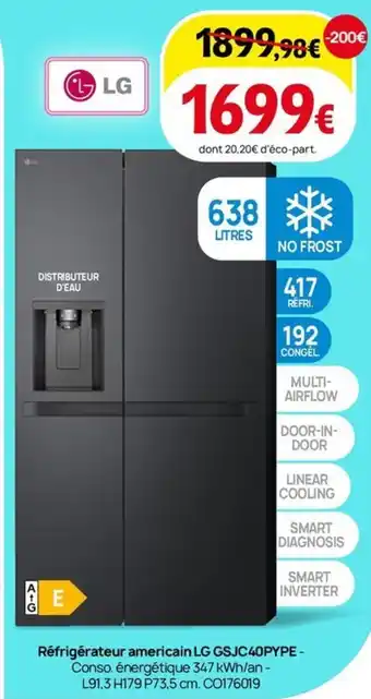 Offre Réfrigérateur americain LG GSJC40PYPE chez Darty