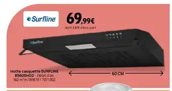 Actuellement en offre chez Darty : SURFLINE Hotte casquette BS60SHD2 ✅ Valable du 13-01 au 1-02.
