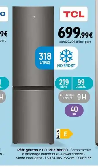 Actuellement en offre chez Darty : TCL Réfrigérateur RP318BSEO ✅ Valable du 13-01 au 1-02.