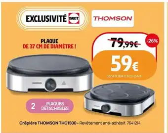 Actuellement en offre chez Darty : THOMSON Crêpière THC1500 ✅ Valable du 13-01 au 1-02.