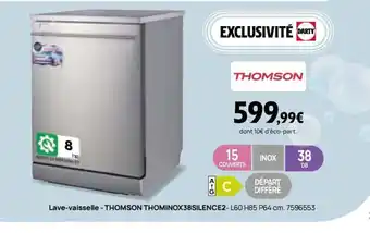 Actuellement en offre chez Darty : THOMSON Lave-vaisselle THOMINOX38SILENCE2 ✅ Valable du 13-01 au 1-02.