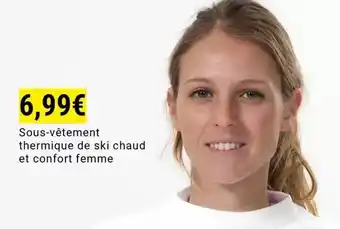 Actuellement en offre chez Decathlon : Sous-vêtement thermique de ski chaud et confort femme ✅ Valable du 5-01 au 1-02.