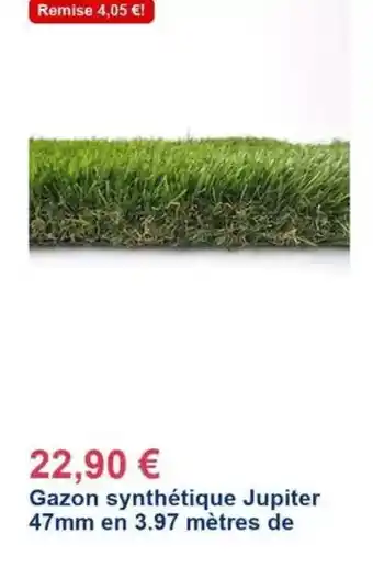 Réductions actuelles de Gazon synthétique jupiter 47mm en 3.97 mètres de chez Décor Discount du 4-02 au 8-03.