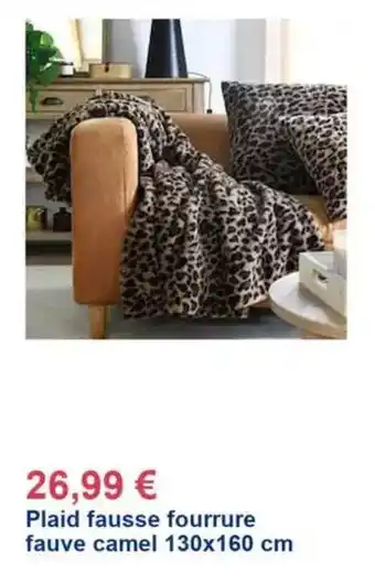 Réductions actuelles de Plaid fausse fourrure fauve camel 130x160 cm chez Décor Discount du 4-02 au 8-03.