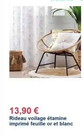Offre Rideau voilage étamine imprimé feuille or et blanc chez Décor Discount