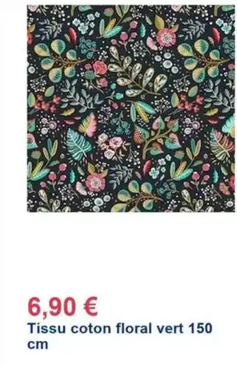 Actuellement en offre chez Décor Discount : Tissu coton floral vert 150 cm ✅ Valable du 4-02 au 8-03.