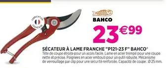 L'offre est disponible dans plusieurs magasins, vérifiez tous les produits pour obtenir le Bahco sécateur à lame franche p121-23 f bahco le moins cher. Si vous souhaitez savoir si l'article est en vente avec une plus grosse remise dans un autre magasin, consultez la catégorie 'Jardineries et Animaleries'. Ces offres pourraient aussi vous intéresser : BAHCO Sécateur à batterie 26 mm, SÉCATEUR LAME FRANCHE & FISKARS Sécateur lame franche.