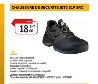 Actuellement en offre chez DomPro : DELTAPLUS Chaussure de securite jet3 s1p src ✅ Valable du 16-09 au 31-12.