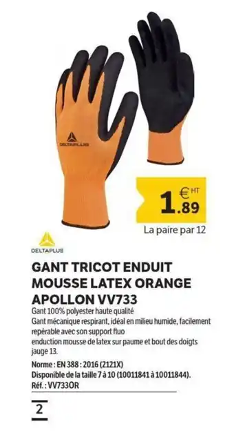 Actuellement en offre chez DomPro : DELTAPLUS Gant tricot enduit mousse latex orange apollon vv733 ✅ Valable du 17-02 au 31-03.