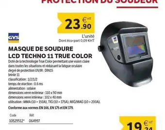 GYS Masque de soudure lcd techno 11 true color : offres et promos DomPro à découvrir