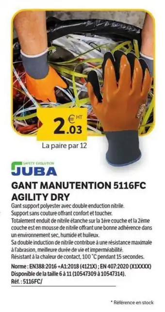JUBA Gant manutention 5116fc agility dry