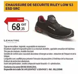 Actuellement en offre chez DomPro : Lemaitre - chaussure de securite riley low s3 esd src ✅ Valable du 16-09 au 31-12.